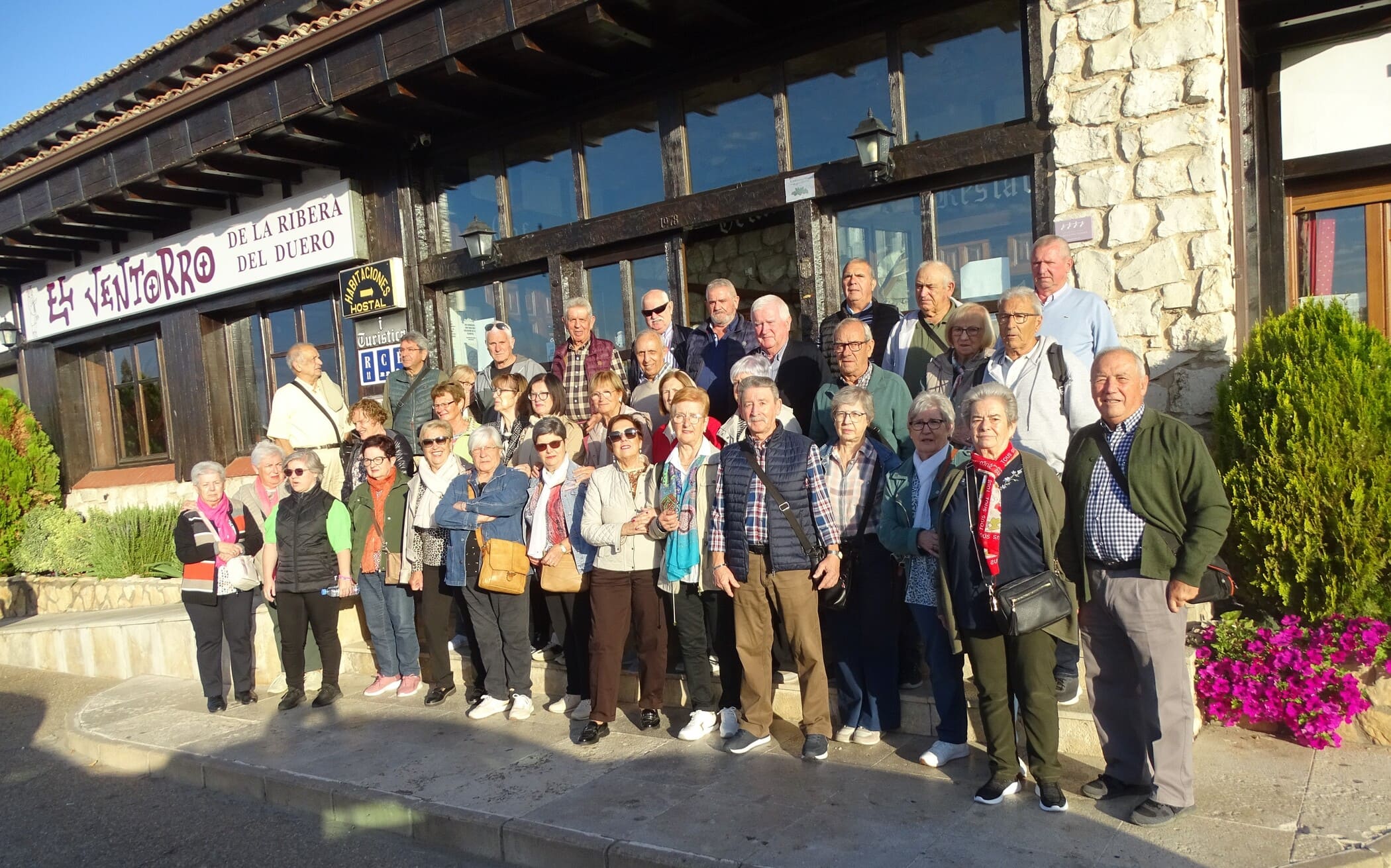 Los viajeros se alojaron en el hostal El Ventorro, muy cerca de Aranda de Duero, durante los cinco días de su viaje. Los viajeros no fueron huéspedes en El Ventorro, sino que lo ocuparon como si fuese su casa sintiéndose muy cómodos por como fueron acogidos por su personal desde la cocina hasta el equipo de habitaciones. Degustaron las comidas típicas de Castilla entre las que no faltó el lechazo asado en horno de leña regado con los mejores vinos de la Ribera del Duero y postres de una repostería deliciosa. Por las noches se les ofreció unas amenas y divertidas veladas en las que no faltaron los gaiteros y la risoterapia.